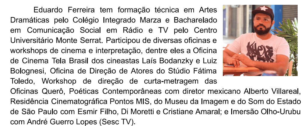 A oficina é dirigida por Eduardo Ferreira, da Orvalho Filmes, que está em fase final de produção do documentário “Tia Telma”, que presta um tributo à Telma Muniz dos Santos, que por mais de 30 anos liderou a Ala de Baianas da União Imperial. Eduardo também já produziu dois documentários sobre os desfiles da escola (2016 e 2017) e o histórico flash-mob da Verde e Rosa na Praça Mauá, em 2015.